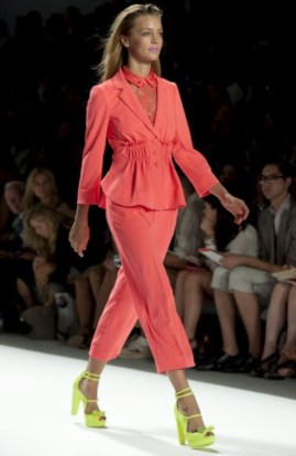 Na passerelle, Vera Wang, Nanette Lepore e Manish Arora não recearam aplicar o néon em look total.